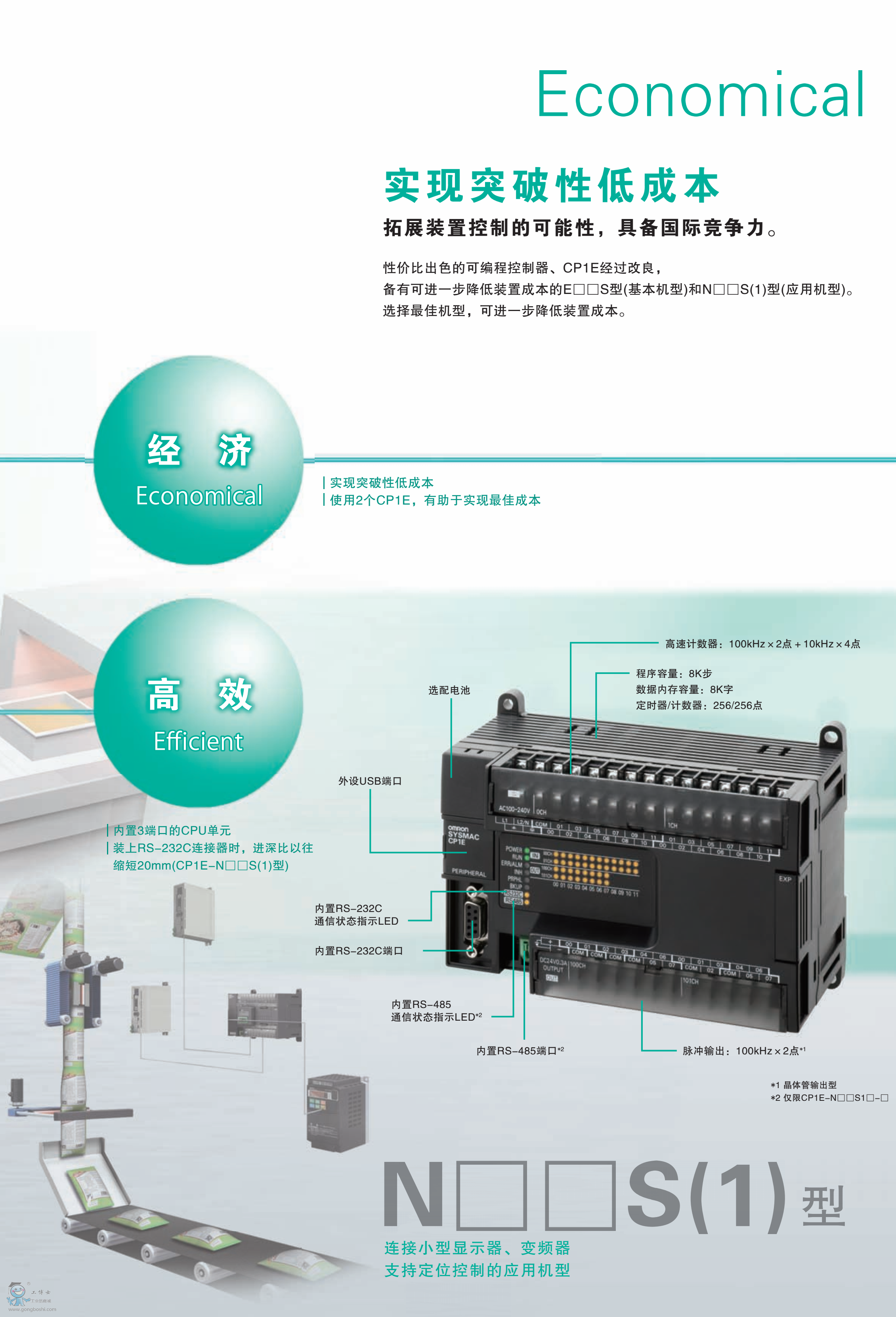 欧姆龙CP1E-N系列PLC20点DC电源晶体管源型输出CP1E-N20DT1-D